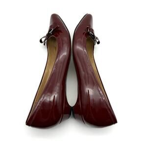 Talbots Moni Patent Leather Point Toe Heeled Flat Dark Candy Apple Red 9