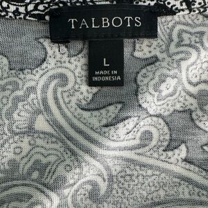 Elegant paisley, light weight top with long sleeves. Features a classic black and white design. Ideal for versatile styling. Works well with black dress pants or for a more casual look, with jeans.