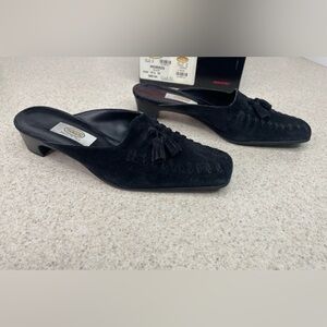 Talbots Morris Suede Tassel Front Leather Mules Black Size 5.5