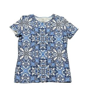 Talbots Mosaic Floral Print Short Sleeve Knit Top S