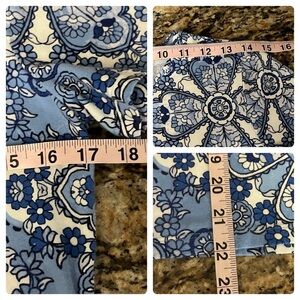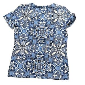 Brighten up your wardrobe with this gorgeous Talbots short sleeve top 🌸 Featuring an intricate blue and white floral tile print, this lightweight knit tee is both stylish and comfortable. Perfect for pairing with jeans for a casual day out, or layering under a blazer for a polished look. Effortless and versatile, it’s a must-have staple for spring and summer