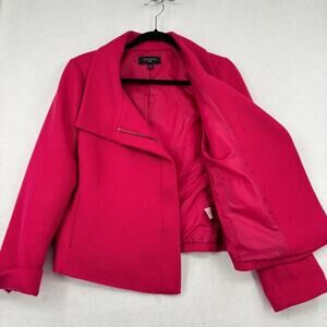 Talbots Moto Blazer Jacket Size 10 Magenta Pink Wool Blend Tweed Texture Lined