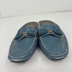 Talbots Mule Loafers Womens Size 7 Teal Blue Pebbled Leather Bow Detail Slip On
