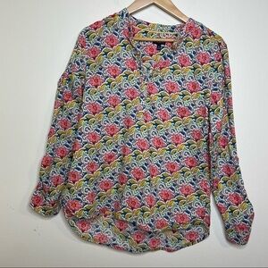 Talbots Multi Color Floral Novelty Print Long Sleeve Button Down Shirt