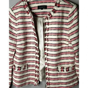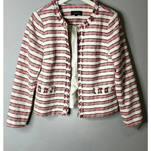 Talbots Multi Color Tweed Embroidered Fringe Trim Blazer Jacket Size 8