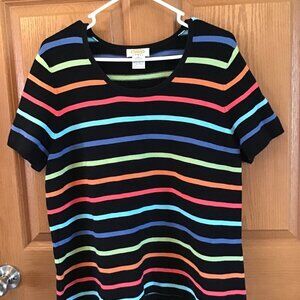 Talbot's Multi Colored Sweater, black with different colored pin stripes, short Sleeve 1 X Scoop Neck 100% Cotton