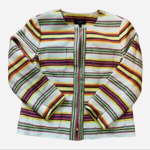 Talbots Multi-Color Stripe Textured Collarless Hook Eye Closure Blazer-12P