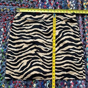 Twn, black, and white A-Line tiger print skirt. Feels like a canvas-esque material and has a hidden side zip. fully lined. No pockets for a sleek look. Preowned in very good condition, no holes or stains.