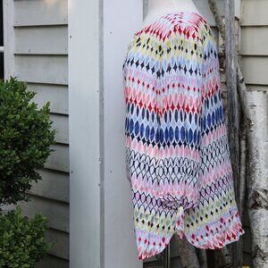Talbots Multicolor Diamond Print Keyhole w Button Neck Tie Cuffs Rayon Tunic XL