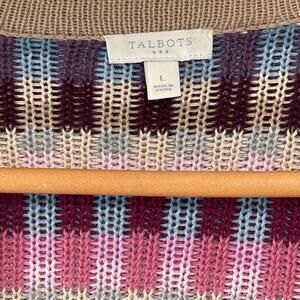 Talbots Multicolor Open Front Cardigan Sweater Tan Pink Size L