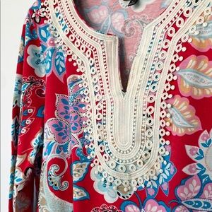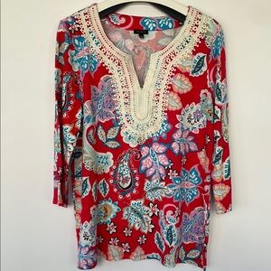 Talbots Multicolor Paisley Cotton Modal Tunic Top Shirt Split Scoop Neck Large