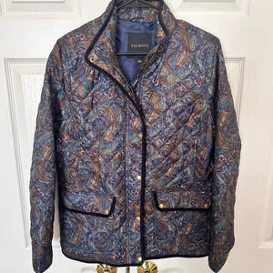 Talbots Multicolor Paisley Quilted Jacket Coat Large Zipper Snap Pockets