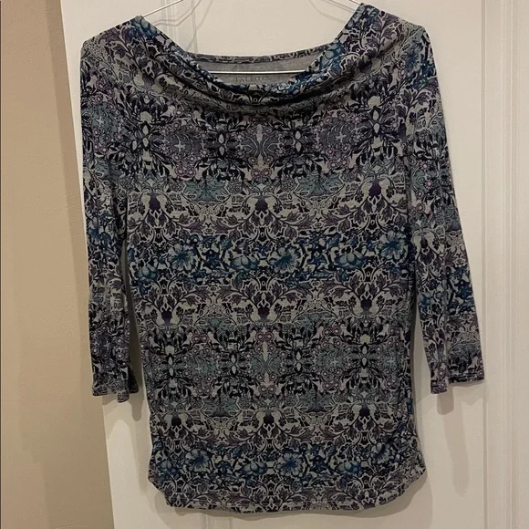 Elegant blouse with intricate multicolor design. Perfect for any occasion.