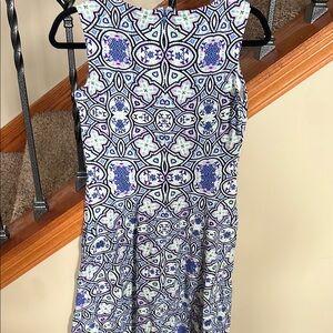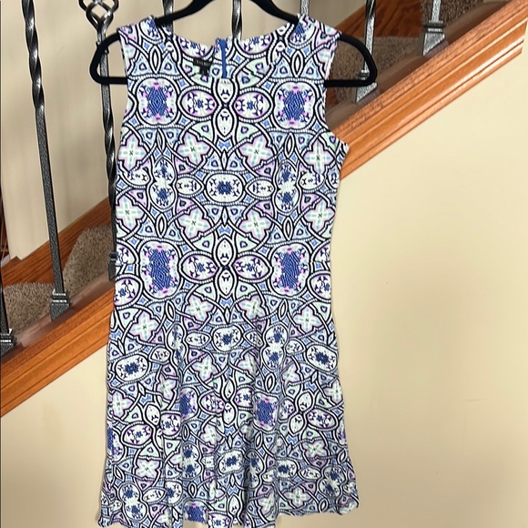 Vibrant dress with a mix of blue, green, and pink patterns. Ideal for adding color to your wardrobe.