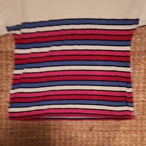 Stylish women's top with vibrant stripes. Features a mix of red, blue, and white. Perfect for casual wear.