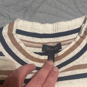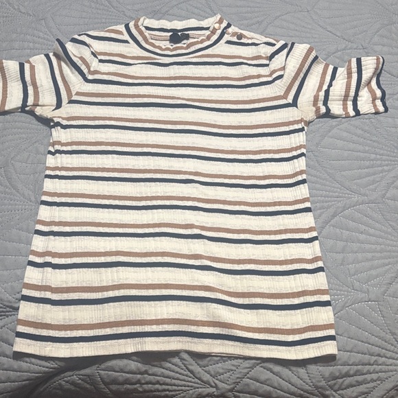 Chic top with multicolor stripes. Features short sleeves. Ideal for everyday style.