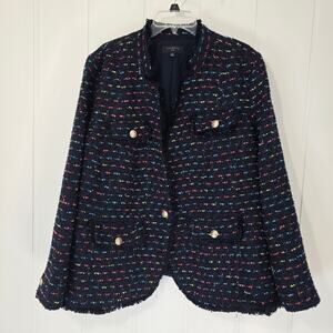 Talbots Multicolor Tweed Jacket Navy Blue Chic Fringe Metallic Plus Size 18W