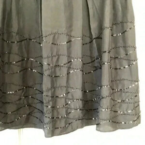 Talbots NWOT Women's Sz 2 Petite Black Sequin Trim 100% Silk Pleated Skirt Formal