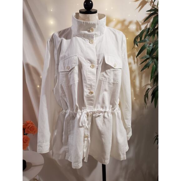 Talbots NWOT Classic Field Tie Waist Linen Cotton Blend Button Jacket Womens Plus Size 3X White $129