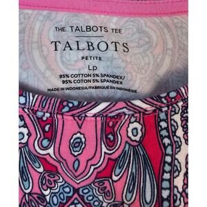 Talbots NWOT Medallion pink LP Large PETITE pima soft 3/4 sleeve top bright fun