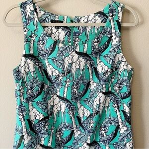 Talbots NWOT Safari Leaf Giraffe Print Sleeveless Shift Dress Turquoise Size 6