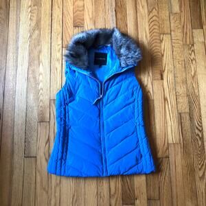 Talbots NWOT Women's Sleeveless Faux Fur Puffer Vest Bright Blue Size S
