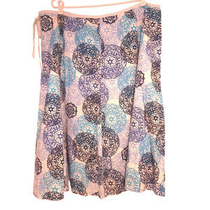 Talbots NWT 100% Cotton Gored Flare Side Tie Mandala Midi Skirt, Size 24W