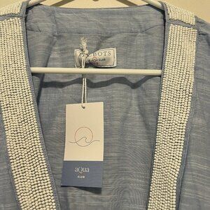 Talbots NWT Aqua Club Embellished Caftan Cover-Up in Light Blue Size XS/S