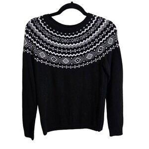 Talbots NWT Black Cream FairIsle Nordic Sweater Size XS
