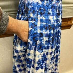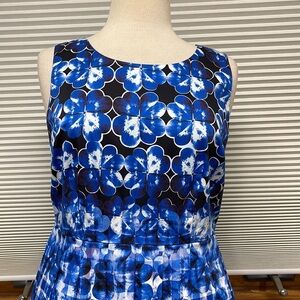 NWT Talbots Blue Floral Ombre Gingham Printed Fit And Flare Pleated Dress with a back zipper closure and pockets, lined.