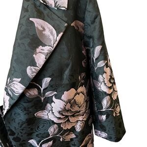 Talbots NWT Dressy Floral Long Open Front Blazer Jacket Pink Roses on Dark Grey