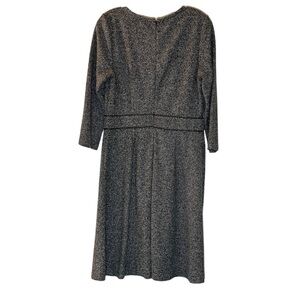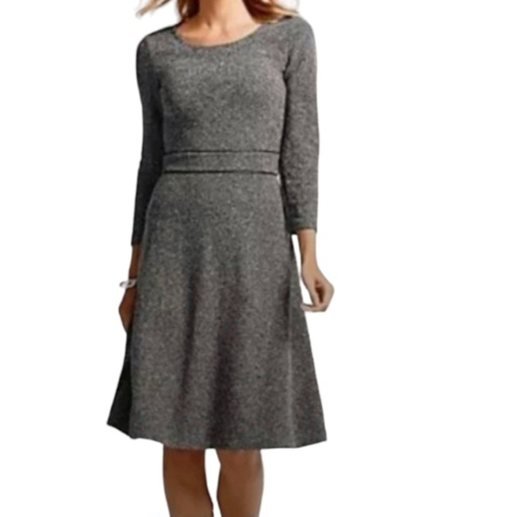 Talbots NWT Fit & Flare Dress Gray Black Tweed Leatherette Trim Knee Length S6