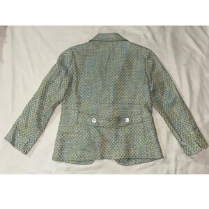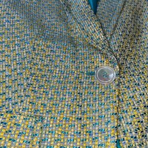 Beautiful multicolour blue/yellow/green Talbots jacket. Single button closure. Polyester lining.