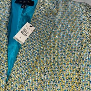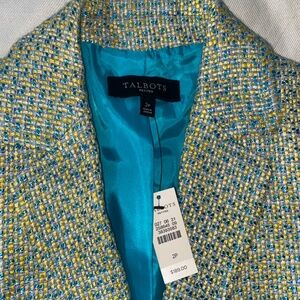 Talbots NWT Jacket Green Yellow Blue Woven.Tweed 2P Petite