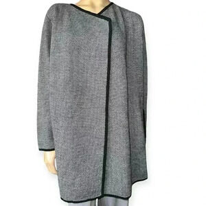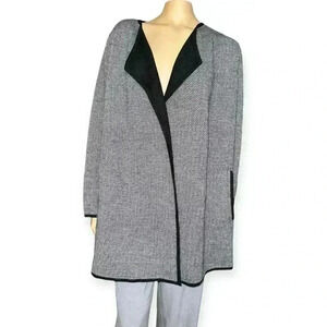 Talbots NWT Long Cardigan Merino Wool Black & White Chevron black trim Size 2Xp