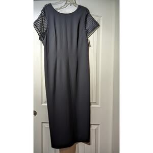 Talbots NWT Maxi Length Black Formal Dress With Sheer Short Sleeves Womens Sz 16