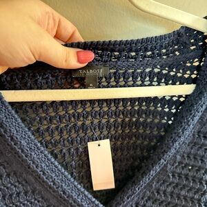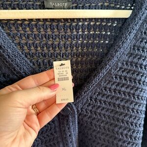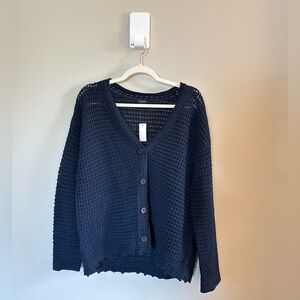 Talbots • NWT Navy Open Stitch V Neck Button Down Cardigan XL Scalloped Hem