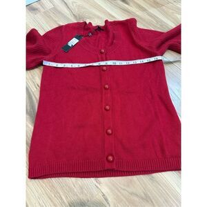 Talbots NWT Red Button Down Sweater Cardigan 3/4 Puffy Sleeve Round Neck Size S