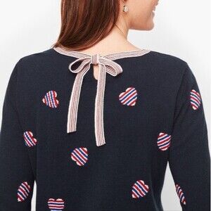 Talbots NWT Size 0x Blue Sweater with Heart Print and Bow tie back