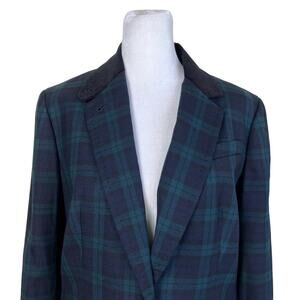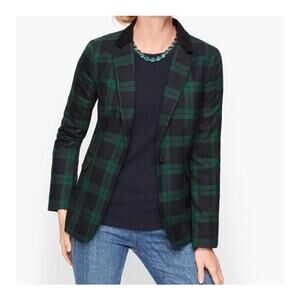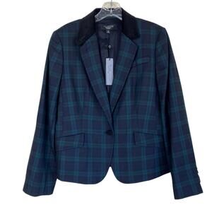 Talbots NWT Sz 10P Wool Blend Tartan Plaid Velvet Collar Blazer Peplum Back