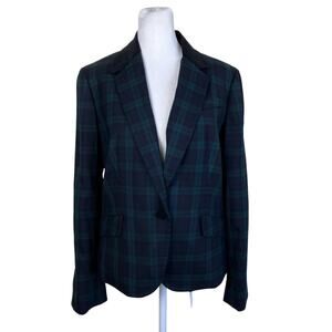 Elegant and preppy - green and black tartan plaid single breasted blazer