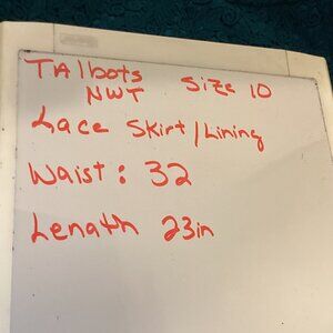Absolutely stunning! This brand-new-with-tags Talbots skirt features a rich teal floral lace overlay with a scalloped hem for an elegant finish. Fully lined for comfort and modesty, with a secure back zip closure.