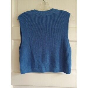 Talbots NWT cropped shaker stitch sweater vest sz Petite blue Coastal Grandma