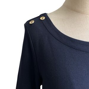 Talbots Nautical Gold Button Navy Blue Statement Sleeve Sheath Dress Size Medium
