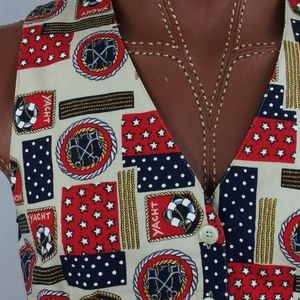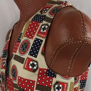 Talbots Nautical Sailing Vest 100% Rayon M Medium Stars Red Blue Beige