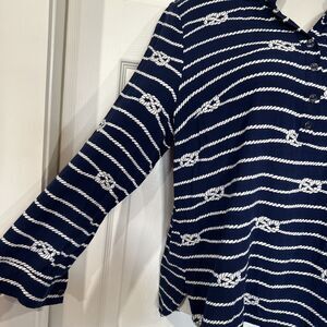 * Talbots Nautical Sailor Knot Blue Tunic Blouse Top Womens XL Petite