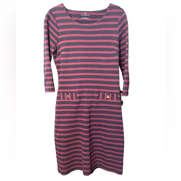 Talbots 💯% Cotton Soft Knit Nautical Striped Pullover Dress Women Size Small