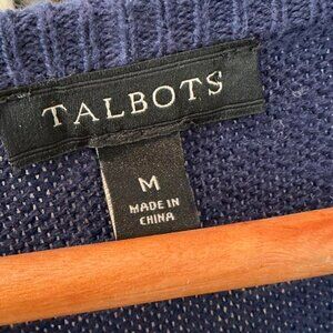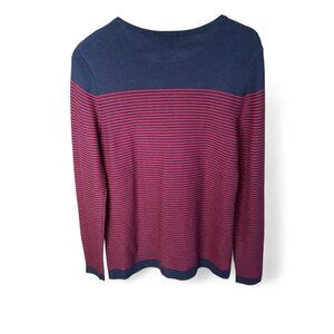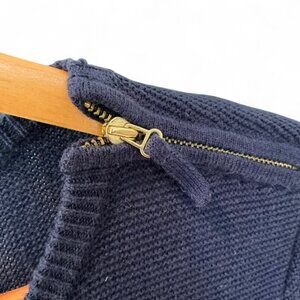 Talbots Nautical Sweater Striped Navy Red Gold Zipper Size M Cotton Cashmere