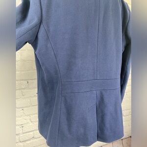 EUC Talbots navy plus sized blazer size 16 petite. This blazer is modern and sleek. It has a single button closure and is lined with white polka dot material. The seaming is a must for a curvy shape, the back seams accentuate the curves and the front nips in a bit under the bust. The lapel is also very modern. Great to dress up at work or pair with a vintage tee!