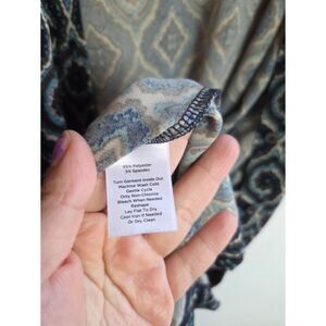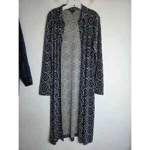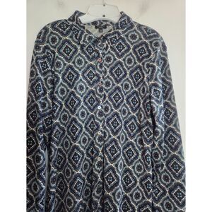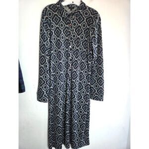 Talbots Navy Blue & Brown Ikat Tapestry Print Jersey Knit Midi Shirt Dress size 14 or XL, great condition